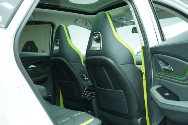 در نمای جلو، جلو پنجره بزرگ با خطوط عمودی و چراغ های باریک LED، چهره ای تهاجمی به خودرو داده اند. سپر جلو با ورودی های هوای بزرگ، حس اسپرت بودن را تقویت می کند. در نمای جانبی، سقف با شیب ملایم به سمت عقب امتداد پیدا کرده و حالت شبه کوپه ایجاد کرده است.